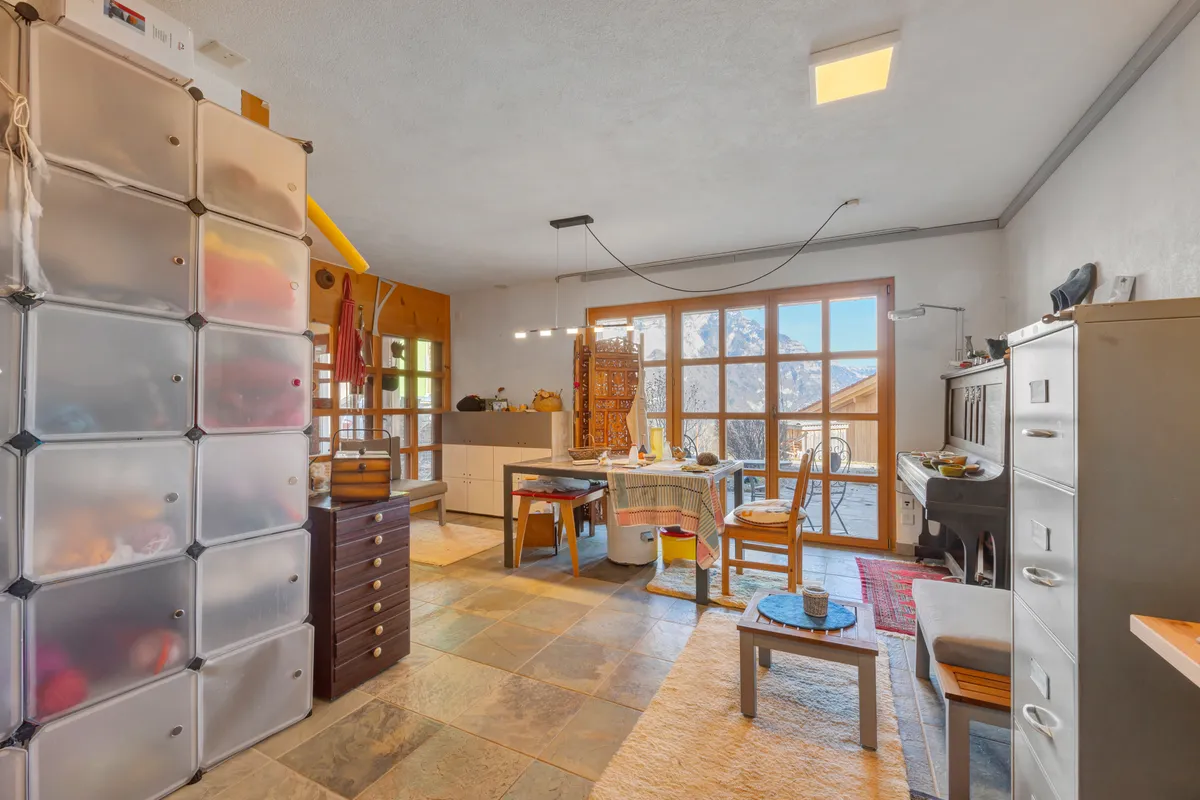 Der Wohnbereich verfügt über einen gemütlichen Kamin, der besonders in den Wintermonaten für eine warme und wohnliche Stimmung sorgt. Ergänzt wird der Komfort durch eine moderne Wärmepumpe sowie eine Photovoltaik-Anlage, welche nachhaltige Energiegewinnung und zeitgemässes Wohnen ermöglicht.