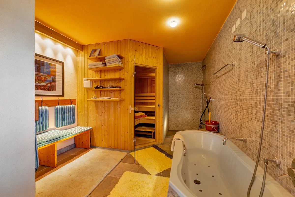 Ein besonderes Highlight ist der Wellnessbereich mit Sauna im Erdgeschoss, perfekt zum Abschalten und Entspannen im eigenen Zuhause.