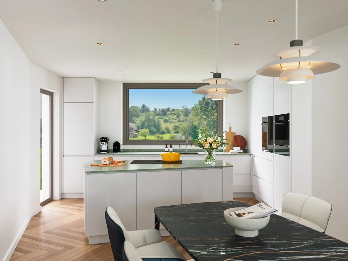 - Individuelle Ausstattung: Wählen Sie aus drei hochwertigen Ausbaustandards (PURE, PLUS, PRO) von eleganten V-ZUG-Küchen bis zu luxuriösen Bädern von Antonio Lupi mit Dampfdusche oder freistehender Badewanne.