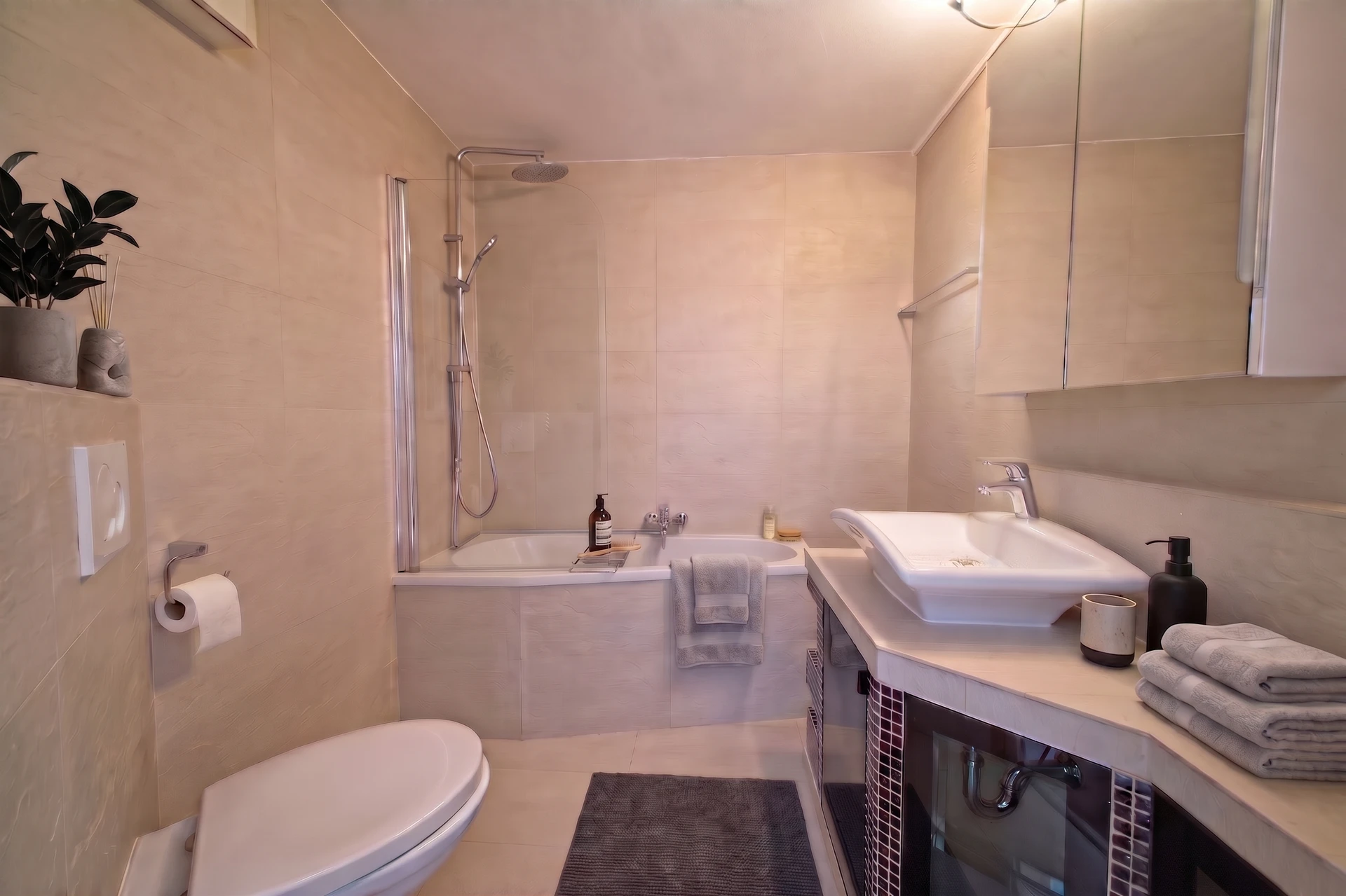 Bereits im Entrée spüren Sie die warme und einladende Atmosphäre. Der offene und lichtdurchflutete Wohn und Essbereich wird zum Herzstück der Wohnung und lädt zum Ankommen, Entspannen und Geniessen ein. Die Küche präsentiert sich in einem sehr gepflegten und nahezu neuwertigen Zustand und lässt keine Wünsche offen.